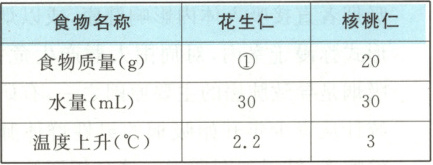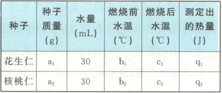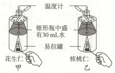 6. (2024·长春二模)每年的5月20日是中国学生营养日,食物中的营养物质为人类提供能量。某社团探究同等质量的花生仁和核桃仁,哪种所含能量多。他们设计的实验装置如图所示,请分析回答相关问题。