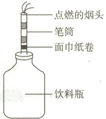 5. 某同学用饮料瓶和废笔筒等材料,制作了一个模拟吸烟的模型(如图)。香烟插入笔筒后点燃,多次挤压饮料瓶,模拟吸烟过程。下列说法错误的是(