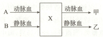 6. 方框中的X是人体的某一结构或器官,A、B、甲、乙分别为与其相连的血管,箭头表示血流方向。下列叙述错误的是(