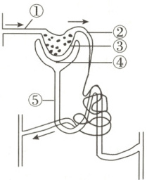 D.如果结构⑤病变,患者的尿液中会有血细胞