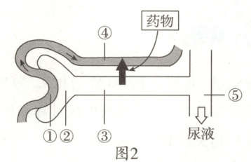 (填“促进”或“抑制”)葡萄糖的重吸收,使更多的葡萄糖沿着图 2 中①→②→③