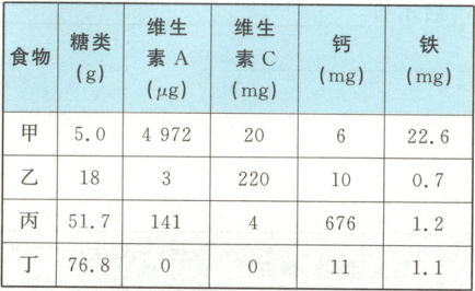 )A.食物丁中维生素 A 和维生素 C 含量为 0,应少食用或不食用