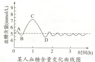 (2) CD段(约饭后1~2h)血糖含量下降,主要原因是