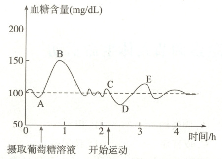 C.C→D血糖含量下降,可能是运动消耗了较多葡萄糖