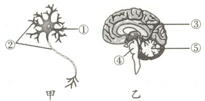 。(4)图乙中,调节心跳、呼吸等重要生命活动的中枢位于[