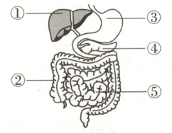D.⑤内有皱襞和绒毛,是消化和吸收的主要场所