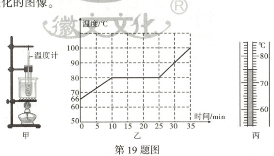 19. 核心素养·科学探究小明利用如图甲所示的装置做“探究固体物质熔化时温度的变化规律”的实验。在0~35 min对物质加热,根据实验数据绘制出如图乙所示的温度随时间变化的图像。