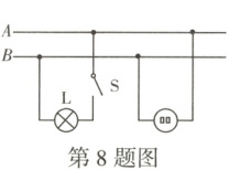 8.开路 【解析】因为闭合开关S,灯泡L在发光后瞬间熄灭,而室内其他用电器仍正常工作,因此可以说是灯泡所在的支路出现故障,如果短路,整个电路都不会工作,因此是灯泡发生开路。