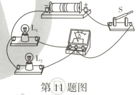 11.C [解析]A.由电路实物图可知,小灯泡$L_{1}$、$L_{2}$并联,故A错误;