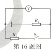 16. 如图所示,电源电压保持不变。断开开关S,电压表的示数为6V;闭合开关S,电压表的示数为2V。闭合开关S,下列说法正确的是 (