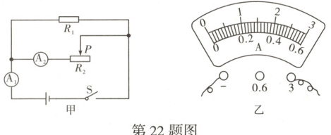22. 如图甲所示,电阻$R_{1}$的阻值为10Ω,所用电流表均为如图乙所示的规格。