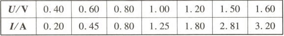 21. 现有两个电阻元件,其中一个是由金属材料制成的,它的电阻随温度的升高而增大,而另一个是由某种半导体材料制成的,其电阻随温度的升高而减小。现将其中一个元件$R_{0}$进行测试,测得通过其电流与加在其两端的电压值,测试数据如表所示: