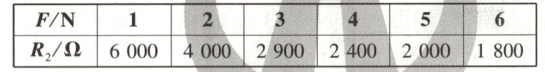 由表可知,此时力敏电阻$R_{2}$的阻值为$2000\Omega$。(2分)
