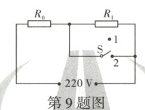 9. 已知家用电饭锅设有“加热”和“保温”两个挡,其内部简化电路如图所示,当开关 S 置于“2”挡时,电饭锅处于