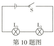 10. 如图所示,把标有“6 V 3 W”字样的小灯泡 L₁ 和“6 V 6 W”字样的小灯泡 L₂ 串联在电路中,在保证这两个小灯泡安全的前提下,允许接入的电源电压最大为
