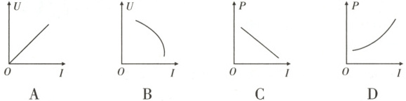 16. 跨学科·数学如图所示,电源为恒流源(能始终提供大小恒定的电流),R₀ 为定值电阻,在移动滑动变阻器 R 的滑片 P 的过程中,关于电压表的示数 U、电路的总功率 P 随电流表的示数 I 变化的关系图像,下列选项可能正确的是(