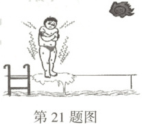 21. 炎热的夏天,小明在家长的陪同下去游泳池游泳。他刚从水中出来时,恰好一阵风吹过,感觉特别冷(如图所示)。请用学过的物理知识解释其中的道理。