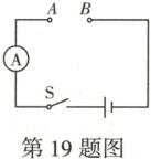 19. 核心素养·科学探究某物理兴趣小组做“探究导体电阻的大小与导体的长度的关系”的实验。他们在如图所示的电路中的A、B两点间接入待研究的电阻丝,电源电压恒定。忽略电阻丝电阻随温度变化的影响,待用电阻丝的规格如下表所示。