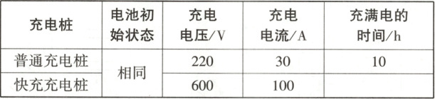 21. 用两种不同充电桩对同一辆纯电动汽车充满电的相关数据如表所示,不计充电过程中的能量损失。