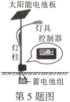 5. 如图所示是太阳能LED照明路灯,白天太阳能电池板把光能直接转化为_能。