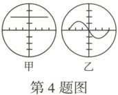 4.乙 【解析】甲示波器上显示的电流波形图是一条直线,说明其频率没有变化,代表的是直流电;乙示波器上显示的电流波形图是正弦曲线,说明其频率有规律变化,代表的是交流电。
