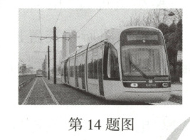 14. 如图所示,有轨电车是城市交通现代化的标志,直流电动机是有轨电车的动力心脏,其工作原理是(