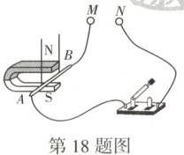 (选填“铁棒”或“铝棒”)。(2) 在正确完成(1)的操作后,闭合开关,发现导体棒AB在磁场力作用下向左运动,若要使导体棒AB在磁场力作用下向右运动,你可以采