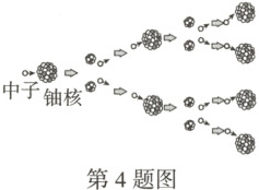 4. 回归教材·人教九物全P195图22.2-2改编 中国物理学家钱三强与何泽慧等合作,在利用中子打击铀的实验中,观察到三分裂变和四分裂变现象。如图所示是某种核反应示意图,这属于核