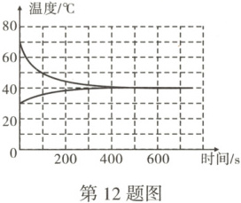 12.C 【解析】A.由图可知,400 s时,热水和冷水到达同一温度40 ℃,所以热水和冷水到达同一温度的时间是相同的,故A正确,不符合题意;