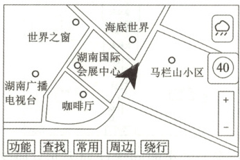 2023 年全球智慧城市大会于 10 月 31 日至 11 月 2 日在湖南长沙国际会展中心召开。下图是东营的小海同学在手机上查询到的会议目的地附近的地图。据此完成 3~4 题。