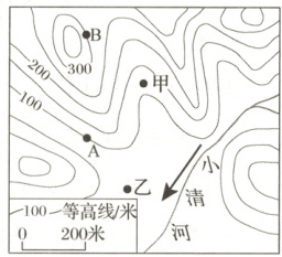 某中学地理夏令营到野外考察,考虑到暴雨可能引发山洪而产生危险,要求同学们不准在甲地搭帐篷宿营。读右图,完成11~13题。