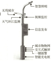 近年来,智慧路灯逐渐出现在城市街头。该路灯灯杆通过信息感知和大数据交互技术,实现了智慧照明、智慧交通、信息发布等功能。当夜幕降临,路灯自动开启,天亮则自动关闭。右图示意某城市智慧路灯。据此完成14~15题。