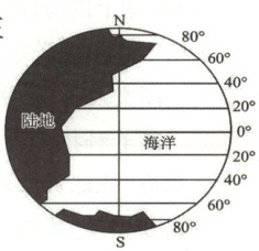 D.中纬度地区均是陆地多于海洋