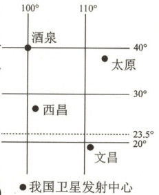 2024年7月5日6时49分,我国在太原卫星发射中心使用长征六号改运载火箭,成功将天绘五号02组卫星发射升空,卫星顺利进入预定轨道,发射任务获得圆满成功。右图为我国四大卫星发射中心经纬位置图。读右图,完成8~9题。