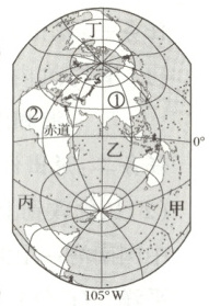 2.D 【解析】甲大洲跨北半球低、中、高纬度,主要地形包括平原、高原和山地,跨北寒、北温、热带,为北美洲;乙大洲位于北半球的中高纬度,地形以平原为主,为欧洲,以温带气候为主,气候温暖湿润;丙大洲主要位于北半球,兼跨南半球和低纬度,地形以高原和山地为主,为亚洲;丁大洲占有南、北半球中低纬度,地形以高原为主,为非洲;赤道穿过非洲的中部,非洲气候以赤道为中心,呈南北对称分布,是干旱区面积最大的大洲。综上所述,D正确。