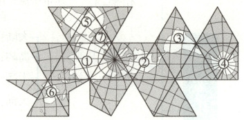 地图是地理学的语言,几乎所有的地图在绘制时都需要对真实的地表做一定扭曲。1943年,美国发明家巴克敏斯特·富勒开发了一种新的制图投影系统,有效地控制了绘制时产生的扭曲,使地图上陆地的大小与现实保持较为准确的比例,人称“戴马克松地图”。据此完成3~5题。