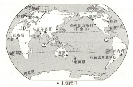 (1)里约热内卢到旧金山的最短海上航线要经过③