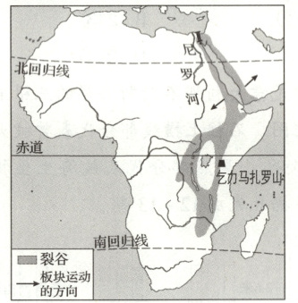 读东非大裂谷图,运用板块构造学说的观点,完成 4~5 题。