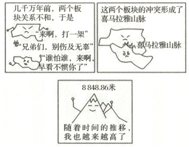 如图为某地理兴趣小组绘制的《珠峰的前世今生》漫画图。据此完成 11~12 题。