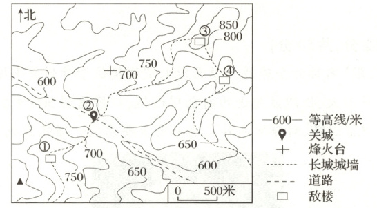 北京某校地理兴趣小组利用周末时间攀登长城,并在带队老师的指导下进行野外考察活动。读长城城墙某段等高线地形图,完成15~17题。