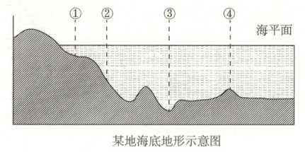 人们把海洋誉为“蓝色国土”。在平静的海面底下,海底地形高低起伏,错落有致。读某地海底地形示意图,完成18~19题。