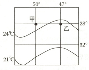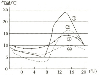 9. 读图,①②③④四条气温曲线中,气温日较差最大的是(