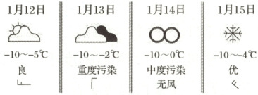 8. 如图为济南某年1月12—15日天气状况。1月14日这天,当济南市梯子山山脚(海拔76米)达到当日最高温时,梯子山山顶(海拔976米)的气温约是(