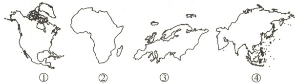 22. 读四大洲轮廓图,关于四大洲的说法,正确的是(
