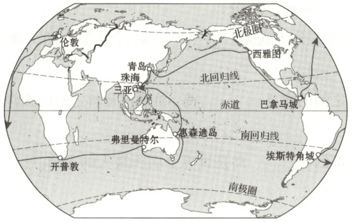 克利伯环球帆船赛是世界上最著名的业余环球航海赛事之一。2019—2020环球帆船赛从英国启航,途经多个地区,最终于2022年7月30日完成环球航行(中途休赛一段时间)。我国的“青岛号”帆船获得该赛季总冠军。下图为克利伯2019—2020环球帆船赛航线图。读图,完成20~21题。
