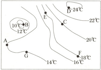 6. 若C点附近有座高山,山顶气温为-4℃,则该山顶与地面C点的相对高度为(