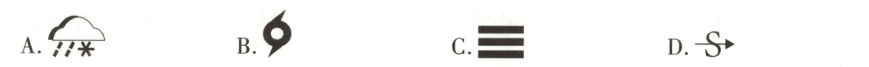1. 该天气现象发生期间,天气预报中可能出现的天气符号是(