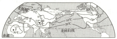 C.丁地年平均气温在30℃以下