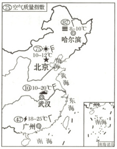 1. 该日图中四城市的天气状况是(