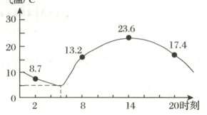 同学们选择某日的2时、8时、14时、20时对百叶箱中的温度计进行观测,并根据观测记录绘制了侯马市气温日变化曲线图。